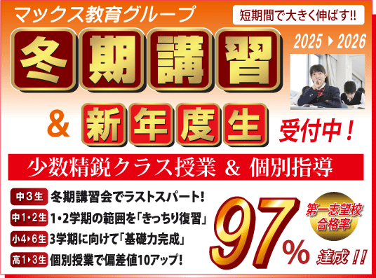 - 【全校舎】2025年度 冬期講習・新入塾生募集!各校舎までお問い合わせよろしくお願い申し上げます。